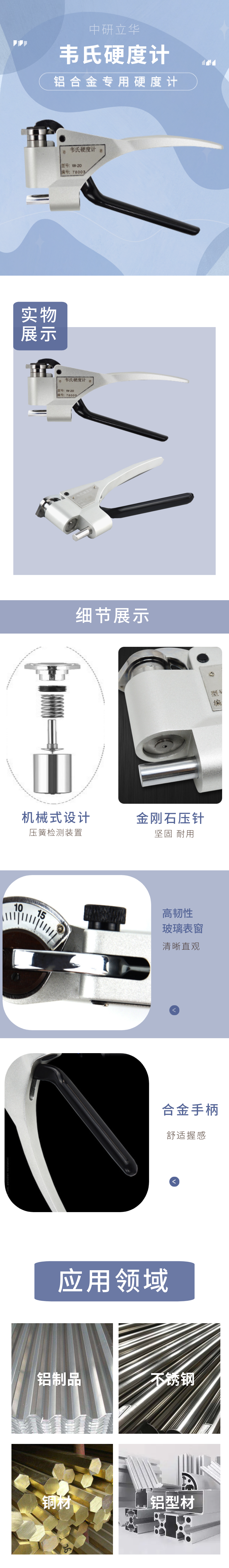 用途:適于檢測鋁合金型材、管材和板材、鋁工件及其他軟金屬硬度。適于生產現場、銷售現場或施工現場對產品硬度進行快速、非破壞性的合格檢查。