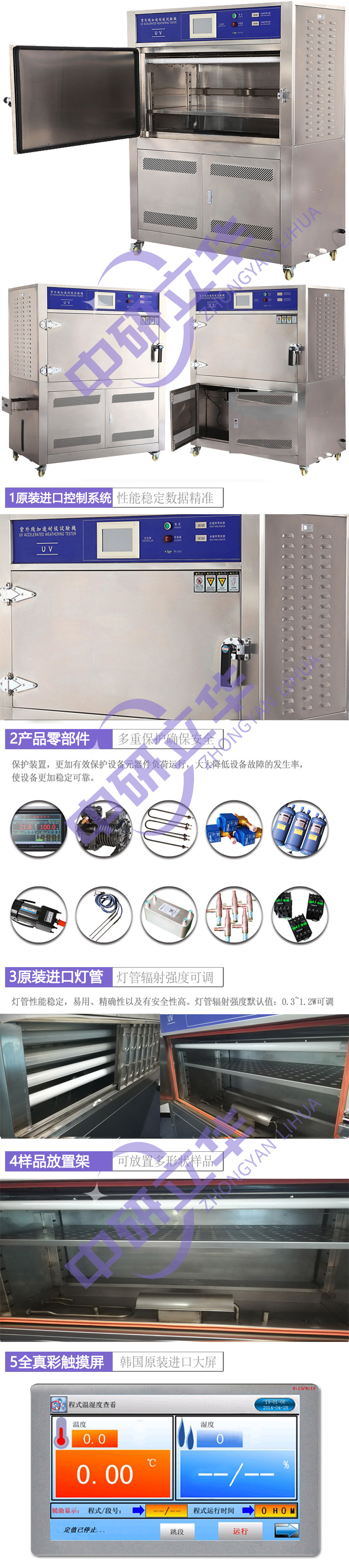 產品用途 | QUV紫外耐候老化試驗箱可以模擬由陽光、雨水和露水對材料造成的危害,UV利用熒光紫外燈模擬陽光照射的效果,利用冷凝濕氣雨水和露水。被測試材料放置于一定溫度下的光照和潮氣交替的循環程序中進行測試。UV用數天或數周的測試,即可重現戶外數月至數年出現的危害。危害類型包括:褪色、變色、失光、粉化、裂痕、渾濁、泡化、脆化、強度衰退和氧化。 UV試驗箱數據可以幫助您選擇新材料,改進現有材料,以及評估變化如何影響產品的耐久性。在材料置于戶外的變化趨勢上,UV試驗箱可以測出相關預測結果。 |