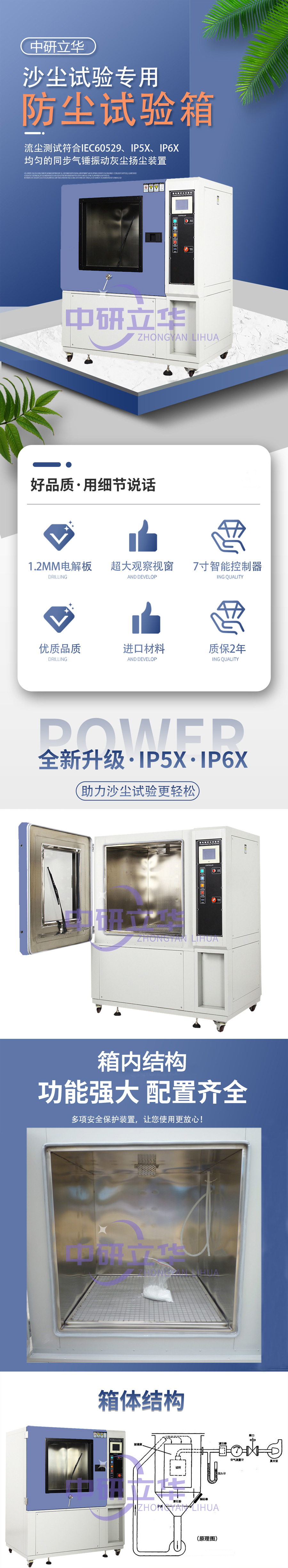 介紹:沙塵試驗箱學名為“砂塵試驗箱”,模擬自然界風沙氣候對產品的破壞性,適用于檢測產品的外殼密封性能,主要用于外殼防護等級標準中規定的IP5X和IP6X兩個等級的試驗。