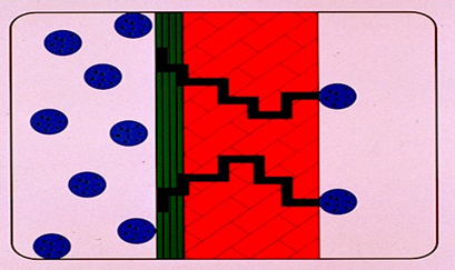 滲透作用。取決于兩側(cè)分子濃度的高低(肉眼看不見的程度)所有的材料都具有滲透性